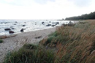 When the rain bucketted down last night we were really pleased to be in our little hut! The mouse was even well-behaved and did not keep us awake! We had a great day's riding today, no rain and quite sunny! We followed quite a direct route along the north coast and had glimpses of the cliffs for the second half of the day. The route continued along small roads passing old manor's and farms. One stand out here is how neat and well cared for everything is. Lawns are mowed and pride is taken in all dwellings and properties that we passed. We stopped to shop at Kunda, which is quite a large town and rather austere. After this we joined the E10 for a bit. It is the direct road from Tallin to St Petersburg. We left it for a few kilometres and the cycle route had us going on a gravel road which was quite badly rutted and pot-holed due to the recent rain. At our first opportunity we rejoined the E10 for a while before taking the turn off to our campsite. The E10 had a good shoulder and although it carried quite a lot of truck traffic, it was not too busy. We might make more use of it tomorrow when the cycle way deviates from it regularly. Our campsite was situated in the grounds of a spa. Estonia offers spa holidays in many places. The Saka Manor House was used as a Soviet border guard station during Russian Occupation and it's condition deteriorated during and after this time. It was restored and is now a luxury hotel. The grounds are large and beautiful and overlook the ocean. We were the only campers and were charged 5 Euro 76 cents to camp here! The shower and toilet block were pristine. Amazing!