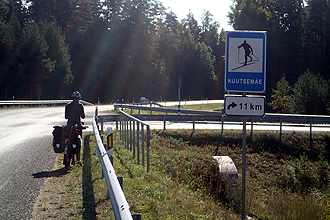 Another perfect day! Cold morning, but clear skies. We are still anticipating getting wet before we reach Riga, but for now, long may the good weather last! We had a late start, what with the chill factor and my cold which is still hanging around. We stopped for breakfast in Otepää and discovered that there are some hills in Estonia afterall! The area is called the uplands. There is a cycle route called "The Tour de LatEst" which takes in southern Estonia and Northern Latvia. It is about 1,300 km long and a clever way of creating cycle tourism. There are maps on the roadside which show facilities for cycle tourists. Good work! We stopped at Sangaste Castle and shortly after passed the 10,000th kilometer for the tour. We celebrated by making a bit of noise and taking some photos to mark the occassion. We only have three days riding to go and about 200 km so we only just made it!