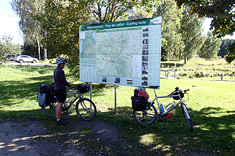 We had booked the ferry for the Saturday evening. We were told to check in with the cars between 2:30 pm and 4:30 pm and of course were made to wait standing by our bikes on the open docks for an hour. The whole thing seemed very disorganised; in fact it looked like everybody involved had never loaded a ferry before. We had an inside cabin, so no window but it had an en-suite and we had a good rest. We couldn't believe that the ferry would take 18 hours, but it did! It was very smooth though; you wouldn't even think you were moving. They tried to create a "cruise" atmosphere on board, with bingo games and some other sort of gameshow. We just lay low and tried to avoid the action! It was nice to go out on deck the next morning as the boat weaved it's way through the islands in the Stockholm archipelago. The weather was great and we had a 3 km ride to our hotel: the Crystal Plaza. This was quite a different hotel to the ones we have previously used as it was quite old fashioned, in a beautiful building. They were happy to store the bikes downstairs and put our luggage in their luggage room so we could go and look around the city as it was too early to check in. We had three days in Stockholm and it is a wonderful city. We were able to organise two empty bike boxes through a local bike store and so we could pack the bikes at the hotel, and then take a taxi to the airport on 23 September when we flew at 11:00 am. We left Stockholm in the rain.