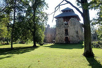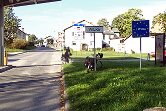 A few clouds about, but still good weather! We reached the border towns of Valga/Valka after 20 km and had a brekky stop. We stuck our Latvian flags to our mudguards; our last new flags. After this we decided to get as many kilometres under our belts today as possible as we were hoping to reach Riga a day early to avoid the looming bad weather. Not a lot changed entering Latvia, except the road got hillier and the road condition worsened. Generally the place seemed less affluent. The people we saw on the road were as miserable as always. We had lunch in Smiltene and then also stopped at Raunu and checked out the castle ruins. The bad roads began to take their toll on us, we both felt achy all over. When we reached our campsite the manager informed us that it was their last night open for the season. It was in a National Park, on the Gauga River. We decided that we would ride the 110 km to Riga tomorrow, which would probably mean that we'll get caught in the rain, but if we get an early start, we should only catch the start of it. We booked an extra night in our hotel which would be the carrot to get us through the day! I was asleep by 8:00 pm with a crushing headache. The drinking water in Estonia and Latvia is bad, some places worse than others, with a lot of taste and colour, but for the past few nights the iron content has been very high. After our hot showers we could smell the iron on our skin and don't really want to drink it.