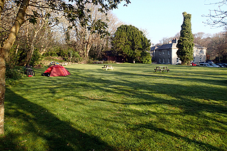 From the looks of things we would not have much choice in shopping today so took a bit of an alternate route to Black Torrington, which consisted of ridiculous steep descents followed by equally bad climbs. The final climb was 17% and had us both off the bikes and pushing. Short but steep! Beautiful scenery abounded however. To add insult to almost injury, Black Torrington had one store in the post office, and it was CLOSED. So we were then onward to Sheepwash where there was another volunteer store where we got some tins of soup and a bottle of Coke. The weather had been gradually fining up with the mist lifting and we were by this time in only cycle shorts and t-shirts. Who would have thought it? We sat on a bench in the town sqaure for a bit and then set off. With about 10 km to go we hit the Tarka Trail which follows a disused rail trail for some distance. What a treat for the end of the day! Level; no hills. We turned off to our camp site which of course entailed a steep climb. It was a lovely spot and we camped inside a walled garden. The campsite is large but in the grounds of an old manor house. Excellent facilities and cycle friendly prices. The day was still wonderfully sunny however at about 5:30 pm you could just start to see a mist gathering in the distance and it grew suddenly very cold. By 7:00pm the mist was very thick indeed. Into the tent!