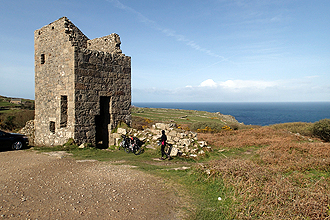 That night the cloud turned to a night of very strong wind and rain! But it had all cleared by 8am and we were on the bike at 8:30 with Mike deciding that he felt well enough. We had decided to ride through St Just and continue up the coast road as far as Porthmeor. This was not the cycle route but we were keen to see this stretch of coast. It was spectacular, tiny villages and remote hilltops and all the time the view of the sea. It was a clear day, blue skies but very cold. We wore winter gloves and jackets, beanies, etc. We stopped for breakfast at a ruined tin mine. The are many old chimneys dotting the landscape from tin mining days and this area is a World Heritage site for this reason. Climbing up the moors we then dropped down into Penzance and continued along the coast cycle path and then cut inland passing many cyclists out on their Saturday morning rides and they were super friendly. The riding was enjoyable with some steep bits. We rode as far north as Hayle which is on an estuary south of St Ives where we had lunch. The section from here to our end point at St Day was marked by steep climbs, all over 10% which made for slow progress. The cycle route is well designed though and makes use of tiny narrow roads which provide limited access into these areas.