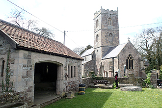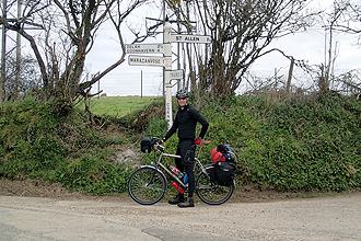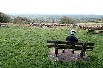 The ride continued pleasantly through Wells (another fabulous cathedral to see) and even Wookey Hole until WHAM a stiff climb up Ebbor Gorge eventually had us both off and pushing; third day in a row with a 17-19% ascent, not ridable with packed bikes. The view from the top however was brilliant! A couple more kilometers and we were in Priddy. This is a beautiful little place with an interesting central grassy field. The sheep market was moved here in the 1300's from Wells due to the plague. The original pens remained until 2003 when they burnt down and so there is a replica pile of pens.