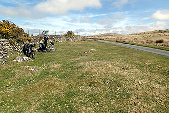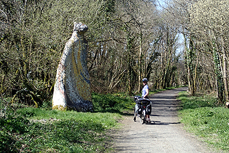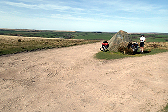 A fabulous day's riding! The morning was warmer than it had been and we set off along flat roads, planning to stop for brekky at a picnic site near Margam Stones. This entailed a couple of kilometres climb up to a gate which was clearly signposted as route 4 - International Cycle Network, but the gate was impassable. It was a lovely metal gate, quite ornate, and one of those made in two parts and designed so that you have to open one gate and then sort of slip through and close it back on yourself. No slipping through though when packed touring bikes are concerned. So we unpacked one bike but it was still too long to fit through and could not be angled round the corner. So here we had something faintly ridiculous, a gate on a cycle touring route that was impossible to get a bicycle through. Mmmm - IDIOTS! We turned back and then approached the picnic spot from the other way.