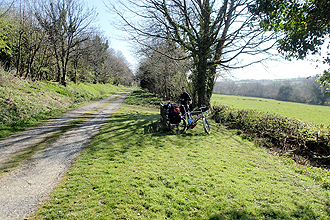 So, no night time visitors and a reasonably good night's sleep on semi-slopy ground. We were tired from our previous day's exertions but were on the bikes at 8am. The cycle route as we now expected immediately threw us in to a series of crazy descents and painful climbs and we decided that we had had enough of that (10-12% ups and twisty downs). It is always the way with cycle routes; they are planned to take you down every twisting, turning road when by staying on a more main road the gradient is always better and you can still enjoy the ride. At the 20 km mark we cut across at Clayhang onto a more major road (still single lane though, but roomy). This took us comfortably on towards Taunton where we had lunch.