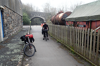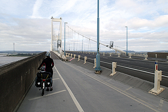 Well, our entry into Wales provided us with the most brilliant day yet this trip! After being glad to have split the day to Bath into two, especially with the closed campsite issue, we enjoyed the longer day even though it did take all day. It was another cold morning, and quite cloudy but fined up later. We remained on the Avon Cycleway for the first part of the day, with our start along the rail trail towards Bristol. We turned off before Bristol though. We stopped for breakfast and boiled water for coffee and then crossed the Severn Bridge into Wales after about 30km. The bridge crossing was brilliant - a very wide, tidal river. Excellent cycleway throughout into Wales.