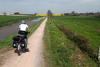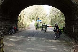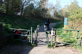 The ride from Taunton to Bridgwater was a nice suprise as it ran along a canal route so that was easy riding and picturesque with swans, houseboats and locks on the canal. At Bridgwater we had a bit of a suprise when the cycle route disappeared and we couldn't figure out how to get our bikes over a rail bridge until we realised we were supposed to use the steep staircase. So we managed each bike together, taking some gear off and hauling them up and down the other side. At the same time we saw about 10 commuters doing the same thing. Bit ridiculous for an international cycle route!