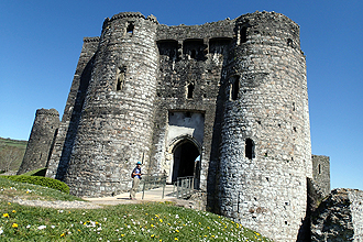We then followed the Millenium Cycle Route for 22km. This is world class and the entire area has been designed considering recreational cycling. The path was wonderfully wide and with sweeping curves. We continued on along the road, off the cycle way (missing out the last foreested stretch) to our wonderful campsite in Kidwelly. About 1km from the site we were surpised by the sudden looming of Kidwelly Castle down a side street in suburbia. Amazing! Wales is a brilliant place with so much to see! Must say that the campsite has the most luxurious shower block I've seen; hotel standard!