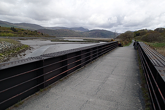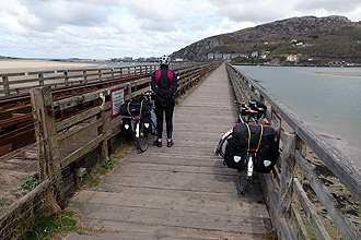 After Harlech (World Heritage Town, imposing castle directly over the town) the route turned inland but was still flat and we even had a tailwind. We stopped for lunch just before the turn off for the bridge to Porthmadog. At the turn off came the sign "Bridge Closed, Diversions in Place" with instruction for cyclists also on route 8. We ended up having to ride an additional 12 km, east along the river, using the bridge at a village further along to cross and then cycling back the other way, into the headwind to Porthmadog. Grrrrr, but what can one do? That's touring for you. Of course now our 102 km day became 114 km.