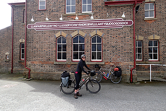 The highlight of the day was seeing the railway station with the longest name in the world: Llanfairpwllgwyngyllgogerychwyrndrobwllllantysiliogogogoch. Abbreviated to Llanfairpwll or Llanfair PG. Thanks! We understand that the name was invented for promotional purposes in the 1860s. It has 58 characters and is the longest place name in Europe and the second longest official one-word place name in the world. The English translation is "Parish of St Mary Llanfair in the Hollow of the White Hazel near the rapid whirlpool and the parish church of St. Tysilio Llantysilio with a red cave". The promotion idea was a winner as there were three busloads of tourists there and a large James Pringle Weavers Department store on site which stocked most types of souveniers you can surely hope to find in Wales and anywhere else in the UK for that matter. We were excited to see a section on Harris Tweed as we will see where it is made on the Outer Hebrides. I added to the profits by buying what has to be the longest sticker showing the longest railway station name in the world and it is now stuck to my bike's top tube, running the entire length of the tube. I love it!