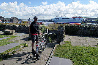 We were served brekky in our cabin and disembarked at about 8am to walk down to the ferry with bikes now laden. The crossing was quite bumpy and many people needed their puke bags but we were okay; Keep your eyes shut and listen to music and it is only a rollercoster ride. We disembarked at the island of St Mary's which will be home for a week to allow Mike's wrist to recover a little more since breaking it 8 weeks ago. Our campsite at the Garrison is at the top of a STEEP hill and we can't wait to look around.