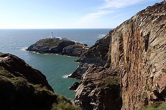 Typically on a rest day, we woke up early due to the excitement of having a day off! We did however laze about in bed until about 9:30 am. We had lovely weather with the wind from the day before having died down. We put out the washing again as we had taken it in the night before for fear it might blow away (and rain may have come in)! We headed into town on our bikes at about 10:30 am. I needed to buy new sunglasses as one of the arms of my glasses had snapped off yesterday. We had seen a store selling Ray Bans, etc. in the main shopping area and went in there. Luckily I was able to find a pair quite easily. We had a look around the town a bit; there is a beautiful church built within the walls of an old Roman Fort which was impressive to see. Interestingly, all the grave stones around the church were set flat into the ground. Other than this and the fabulous Castle Bakery where we bought pies yesterday and today, there was not much to see in town. Later in the day we rode out to South Stack, a lighthouse a few kilometres from the campsite. There were fabulous views from there; it was a beautiful day. We did not go right down to the lighthouse as there is a fee (GBP5.50 each!)but you could appreciate the large seabird colonies from the cliff edge. It was a cold, but dry night.