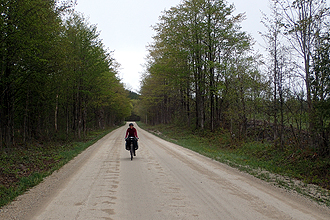 As with the weather, the road was completely different too. No more farmlands now. We followed a forest road (gravel but very good) and although gently undulately, it was lovely to have it mostly to ourselves. It feels like touring when you are not having to concentrate so hard on traffic.