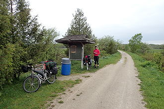 Shortly after leaving our campsite we passed a fellow tourist heading off in our direction! He is Canadian and setting off from Ottowa to Vancouver. It is great to know that someone else is doing a similar thing! The first 20 km were along a quiet rode which was again the Trans-Canada Trail or the Great Lakes Waterfront Trail. Then we took the turn west and joined the Trans Canadian Highway; Route 17 in this case.