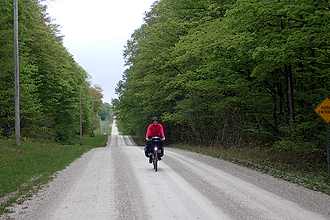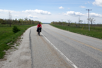 All the cars left the ferry quickly and by the time we set off the road was empty. It was a great ride to our destination. We had a good shoulder all day today in fact. We had been warned that the island can be much colder than the mainland and this proved true. We were back in gloves, balaclava, windstopper, etc. Manitoulin is the largest freshwater island in the world and a destination in itself for cycle tourists and kayakers. It is joined to the mainland by road in the north but only accessible by ferry from the south. The lake that it is situated in is Lake Huron (we had been trevelling along the coast of this lake all the way up the Bruce Peninsula).