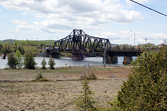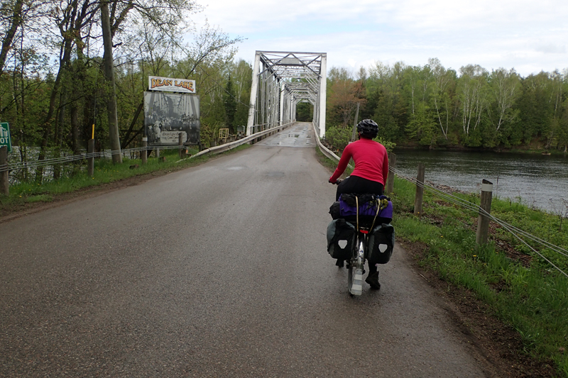 We hit the road at 9:00 am which is our usual start time nowadays it seems. Our route stuck to Highway 17 for the first 12 km along the Blind River which was a beautiful ride. The trees here are amazing as they are all different colours, from spring green to deep red. The maple trees come in so many colours and leaf sizes; reminds me of our own eucalypts at home. We left the highway, crossing the river at a steel bridge opened in 1908. There was a lovely billboard size photo of the crowd at the opening. It's a lovely idea.
