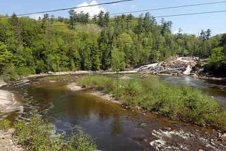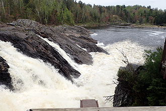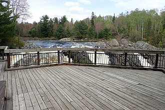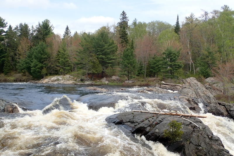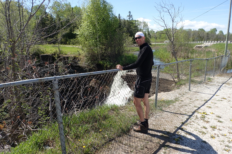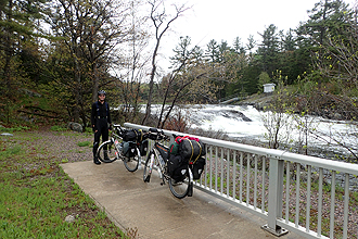 The road flattened out and it was a pretty ride on a quiet road parallel to the Trans-Canada Highway. We were back on the Great Lakes Waterfront Trail and the Trans-Canada Trail also. We saw another horse buggy with mum, dad and child dressed traditionally and also a group of men building a barn in the Lee Valley. This brings the on-road buggy count to two! The Chutes Provincial Park is lovely and the sites are set in tree lined pockets. We have opted to camp in the radio free area right above the Chutes which are loud and amazing! So much water gushing over the rocks! One of the park attendants warned us about bears which visit the campsite. They have a number of sites with food bins that can be locked so as not to attract the bears. This is the first time we have been warned about bears. Our bear containers are safely in the bush away from our tent.