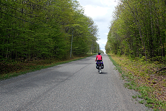 We had a tailwind for most of the rest of the day and cycled speedily through farmlands. Maple syrup was advertised for sale at many farmhouses, but as it is sold by the gallon we did not really have room to buy.