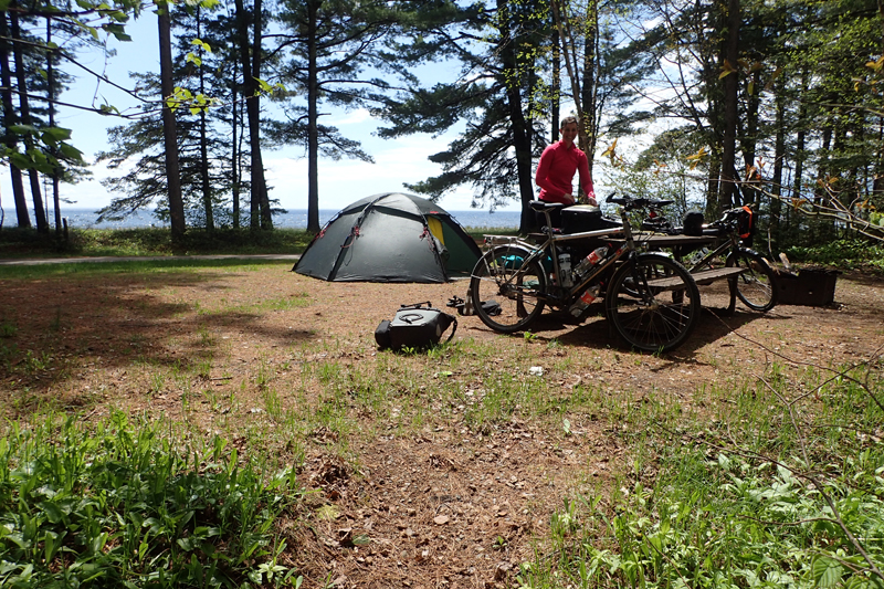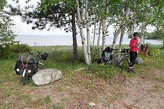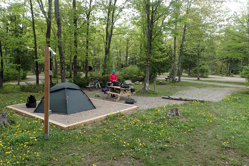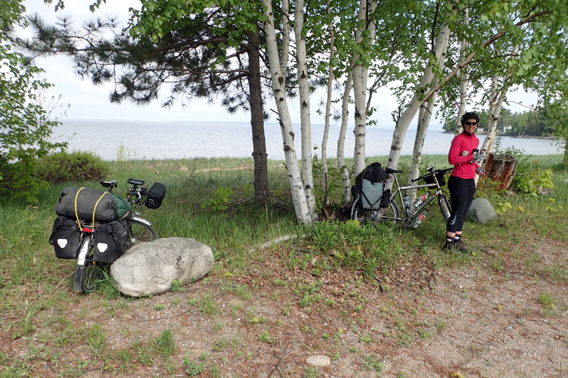 We had ridden further than planned yesterday so had only a short ride to Neys Provincial Park today. We would really recommend these parks as we have stayed at quite a few and they are great. They all have lovely camp site settings in natural bush and the same reliable hot showers.