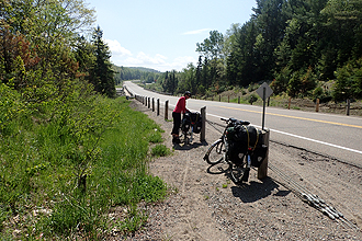 The issue for us was that there were no other options for camping in the area. We had ridden 85 km by this stage so would be on the look out for a bushcamp. We stopped at one pull off down to a lake and two cars came in after us. We would need to look for somewhere that only bicycles could reach. After some more kilometers we realised that the next campsite for us to aim for would actually be tomorrow's end point. It was a provincial park campground so we knew it would be available. It would mean 160 km ride today and then another rest day tomorrow. We both sort of thought we could ride 160 km but it is a long way. While we were still going in the right direction, the best thing is just to keep pedalling and look out for a bushcamp.