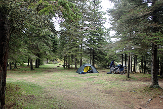 When we arrived the office was open and the friendly lady on duty said that she had booked us into her favourite site. Normally we like to choose our own site, but when we got to the one she had picked it appeared to be two sites in one! Enormous! And just our little tent and two bikes to fill it. The washing is done and hanging up to dry. We will have a rest day here tomorrow because rain is coming; also we deserve it!