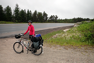 We cycled through the whole of Norway just wishing to see a moose and never did. Today while racing downhill in Lake Superior Provincial Park on the Trans-Canada highway, there were two standing by the side of the road as relaxed as you like! Mike spotted them first (on our side of the road) and I screeched "MOOOOOOOOOOOSE!" as we came to a stop. The sad-eyed creature just stared at us for quite a while and then turned to follow his/her mate into the bush. What a thrill!