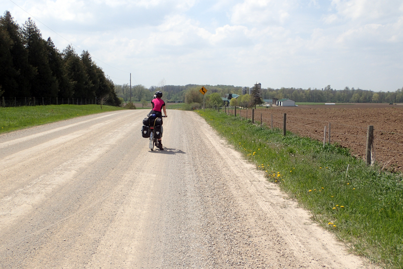 After Kitchener we continued on a rail trail - The Iron Horse Trail and also the Laurel trail which thankfully drew us out of the city. City's just absorb time. Then things started to get interesting. It was a combination of things really; a headwind or crosswind dominated, the well situated rail trails gave way to dirt farm roads, and we started to get hot. Anyhow, those last 40 km really dragged by.