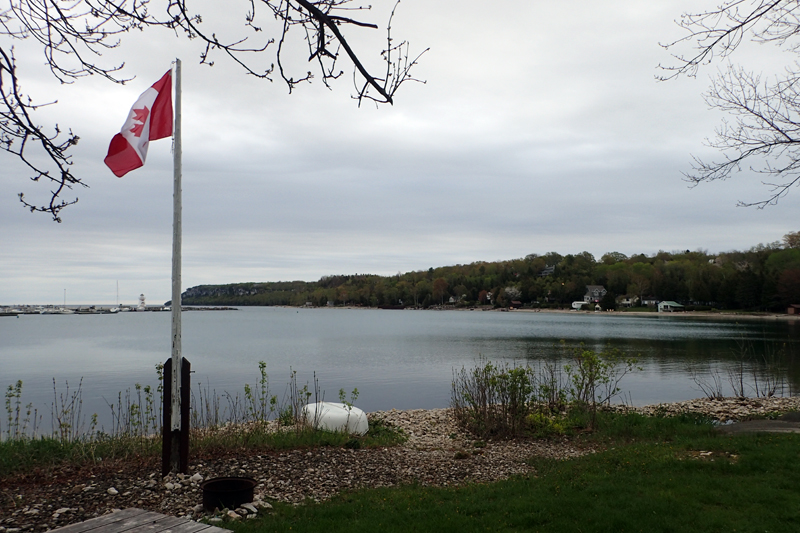 The start of the day took us along the Bruce Trail. This is a walking trail that runs from Tobermorey in the north (where we are headed tomorrow) to Niagara, a distance of 890 km. It is quite renowned. It was a great start to the day. After that we were on quiet forest roads and farm roads, all very pretty. None of the starkness that we saw around Kitchener a few days ago in the heat. At the halfway mark we arrived in Wiarton and as we were warned, we FROZE. The tempersature dropped 10 degrees in the space of a few 100 metres, just like climbing into a fridge. After the town we rode along the coast a bit and stopped at a lookout to see a group of people board a boat on what appeared to be a diving expedition. Rather them than us! This is the deepest part of the sound and this is why it is so cold. The body of water cools the whole place down.