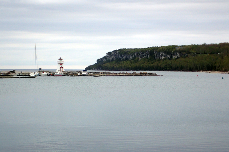 It was only about 30 km further to Lion's Head and as cold there again! As we set up the tent it started to rain and then a mist rolled in so you couldn't see anything. The campsite is on the marina and a very pretty bay with views of the lighthouse and cliffs.