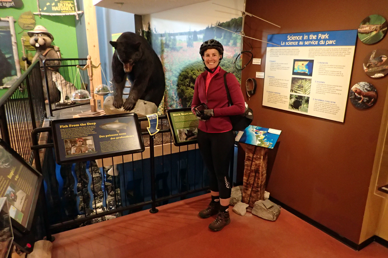 Gordan Campsite is brilliant. It is so prettily laid out; tent sites in small forest areas and also there are tipi's and small cabins. There is a proper campers kitchen as well - our first in Canada. Of the other 10 campsites we have used thus far only Harrison's had so much as a sink for campers to use to wash dishes. All the others just had stern notices saying "No dishwashing here". We used our Sea to Summit kitchen sink, filled up with warm water from the washbasins at these places and our washing up is limited, but still you have to throw the used water somewhere (under a tree usually). I guess most campers are in those huge monstrosities on wheels which apparently even have granite benchtops and surround sound if desired. Anyway, kudos to Gordan Ecopark for having a proper campers kitchen. We cooked dinner there! They also have a fantastic Nature Hall with all manner of things relating to the area, from stuffed bears and wolves to fossils and information about the night sky. Apparently you can see the Northern Lights from here and they even have a Northern Lights weekend THIS weekend. We were suprised about this as it is only on the 45th parallel so not that far north. We were also suprised to see the sky clear at 8.30 pm and hope for a clear day tomorrow.