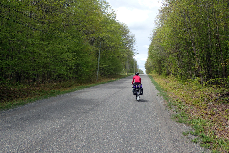 Mike worked out while leaving the campsite that of the four bushcamp options available to us today, the third would equal a 80 km day which leaves us with 100 km to Dryden tomorrow. That worked out well. We had a headwind all day today and would spend the whole day on route 622 which is a very quiet road, really only logging trucks passing. The road surface was quite large aggregate so a bit slow, but generally good.
