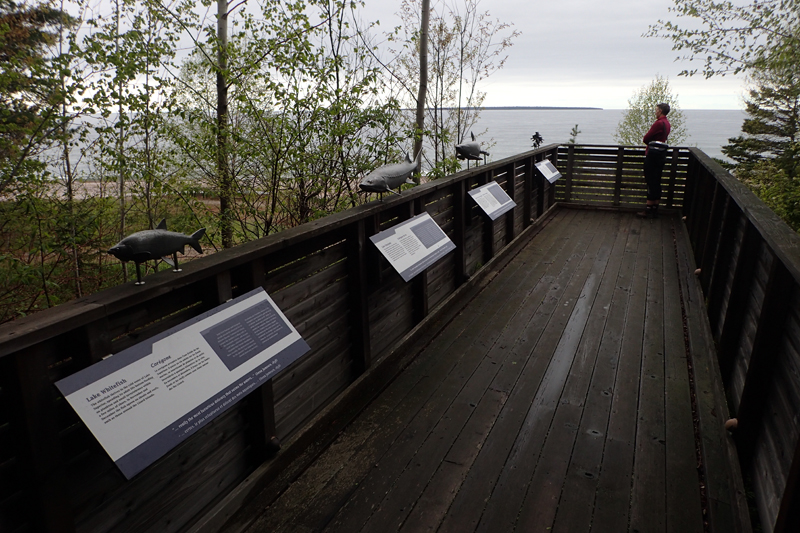 As we sailed downhill inside the provincial park towards the Lake famous for having it's own climate, the temperature instantly dropped 8 degrees. At the self-registration kiosk we met a motorcyclist and his wife who had just driven down from Thunder Bay today. It's amazing for us as Thunder Bay is quite an important milestone and nearly 300 km or 3 days away and they left there and got here in a few hours. The Lake was very misty when we arrived and picked our site which is on the shore. The park has 4 camping areas catering for everything from tents to massive 5th Wheelers (some of them are even called .....Lite??). The cold temperature meant few bugs and we anjoyed cooking outside and going for some walks. It is an interesting park as it was a POW camp in WW2 for Germans. Apparently they liked it so much and were so well treated that many stayed on! Who could blame them?