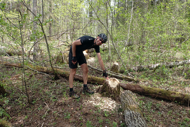 When we went down to filter the water we came across our first beaver workshop. We could not believe the size of the trees that these things can fell using their teeth (like 70 cm diameter trunks and massive woodchips all round)! It is amazing. The weird thing is that the trees just lie there, I don't know enough about beavers to know exactly how they operate. Maybe they need to wait until the wood dries out. There was one pine tree with a massive base, all chewed around the outside. Maybe they wait until it is chewed enough to fall over into the lake? As we left the lake we heard a HUGE splash as something heavy hit the water some distance away. Beaver "TIMBER!!!"? Shades of things that fall into a Finnish lake from our 2015 tour!