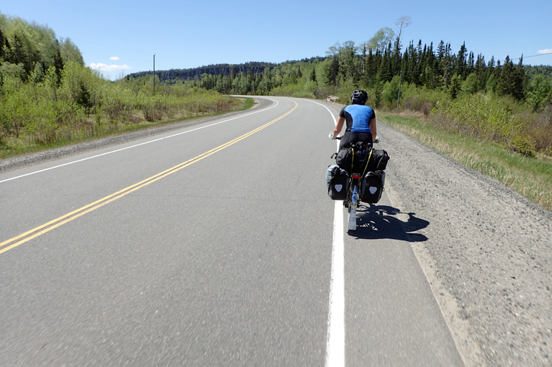 The Trans-Canada Highway opened before us in all it's glory today. After 1100 km of riding, it finally feels like the open road has begun! We spent the day on it and for the most part (except for the start being so close to the town) it was lightly trafficed and quite relaxed. There were the inevitable trucks but it was nothing like that day to Blind River. We are optimistic about using it over the next 10 days to Thunder Bay, which is our next main centre. The signs en route showed Thunder Bay in about 640 km from our days' end today.