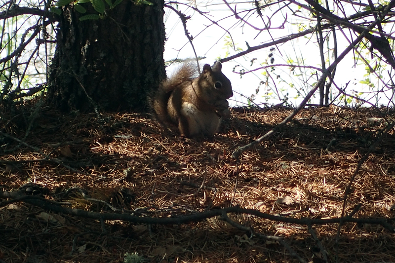 Our peaceful sleep was interrupted last night with, yes you guessed it, our first visit by a family of curious racoons. We heard a low chortle and then a thump as one dropped out of a tree onto the ground somewhere nearby. Mike sprang into action and grabbed a head torch, poking his head out the tent door. He saw four racoons, all sort of holding on to each other, dangling from a ridiculously thin branch above our picnic table. They were clearly overcome by curiosity. Of course given their precarious perch, one fell off and they all disappeared. Mike then put our bear containers (which we store all our food in) away from the tent under a tree. This was to prevent a potential unzipping incident that we had been warned of! Anyway, after they had scarpered we weren't bothered again.