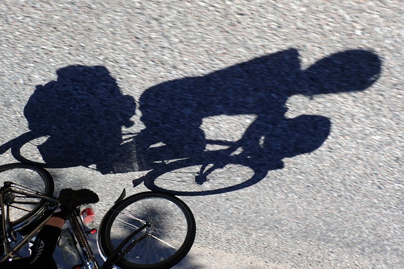 About halfway along the route we stopped for a snack. Sometime after this we suddenly heard a huffing sound while riding along the road and Mike looked back to see a GROUSE running after us, tail and wing feathers all puffed out, clearly defending a nest. He was stomping his feet and actually huffing at us! We would take a chasing grouse rather than a chasing bear though!