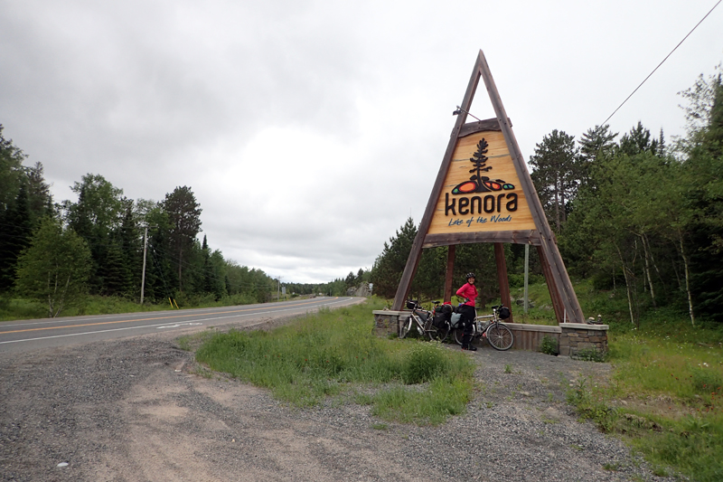 We had left the highway and rode most of the day on route 594 towards Eagle River. It was hillier than the highway but more interesting as smaller roads are. We had quite a stiff headwind all day and rain was threatening so were quite pleased to get back on the highway for the last 25 km. We cycled through Vermilion Bay, which looked quite interesting albeit too touristy for us, but did not stop as the rain was very close. It drizzled a little but stopped as we reached our campsite. Crystal Lake Camping is great, we have all the luxuries; a bin on site, which we have NEVER had in our lives, as well as a table of course and the very nice toilets are almost en suite for us.
