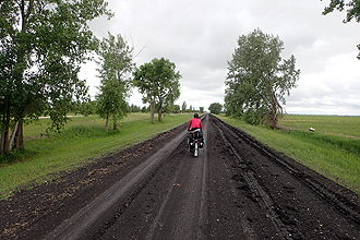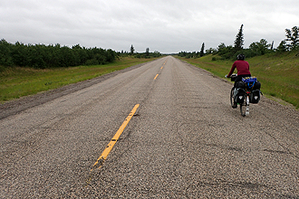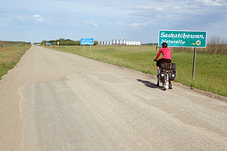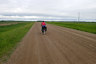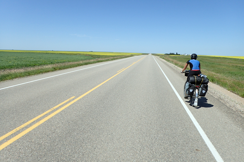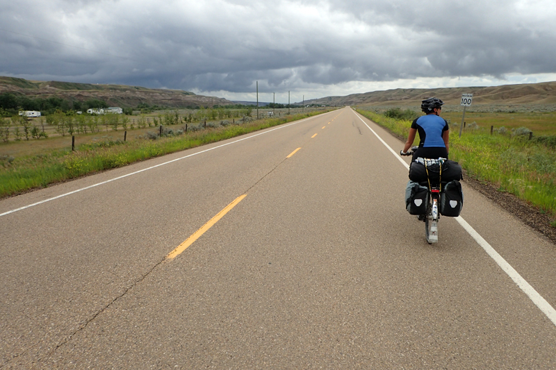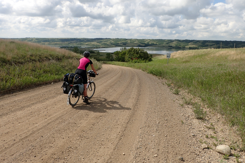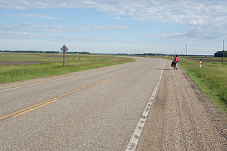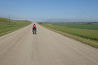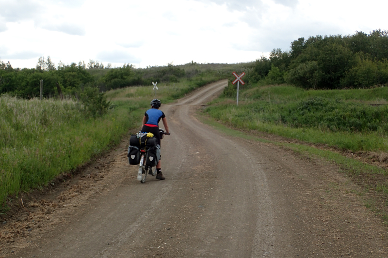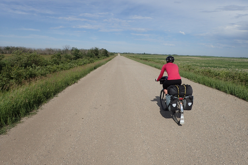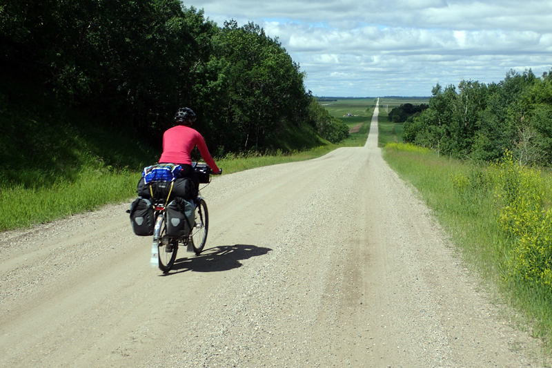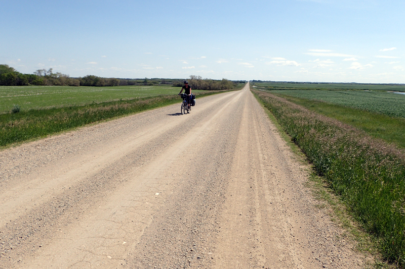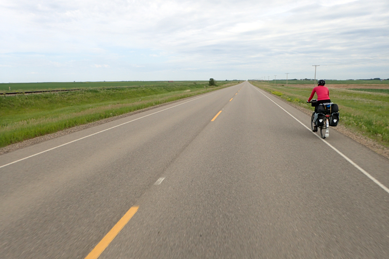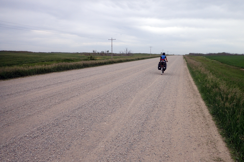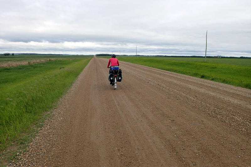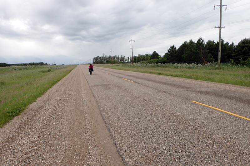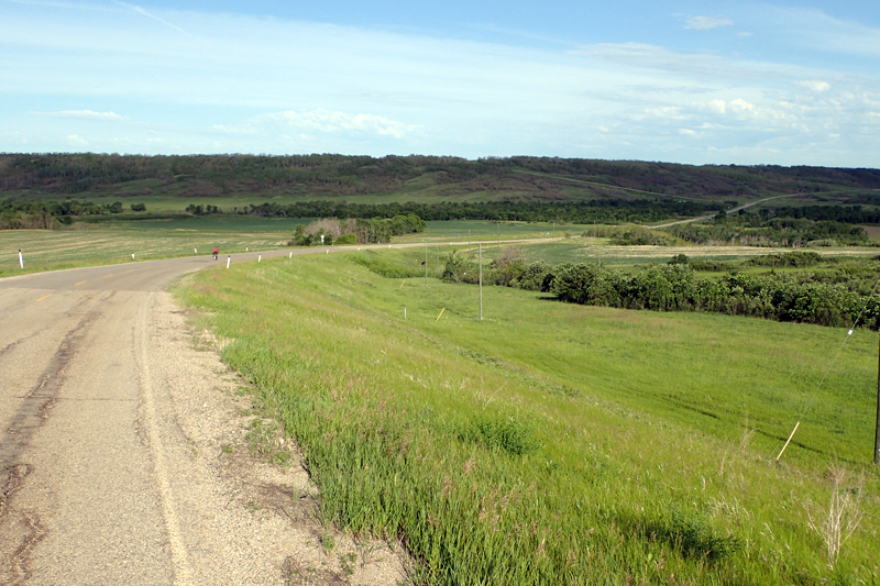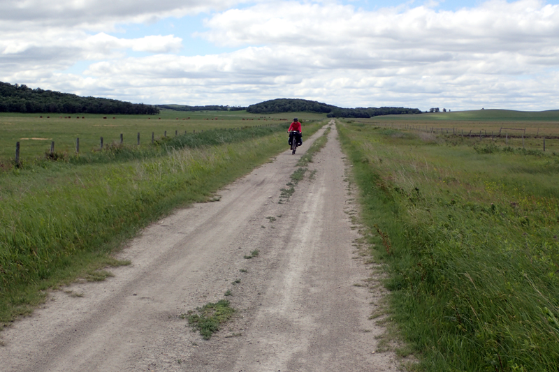 We spent a long time last night discussing the route and whether or not to go to Lumsden as for us this would mean about 40 km gravel road riding and a headwind (of course). The gravel/wind combo is not to be trifled with! In the end we had nothing to worry about and showed great fortitude. Also, the road condition was good and even excellent in places.