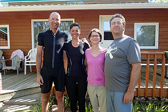 Murray and Heather, from Regina, gave us their address in Mistusinne and we agreed to meet up there later. We hopped on our bikes, now spurred on at the thought of cooked meat and with the tail wind, we were at Douglas Provincial Park in about 1h 30 min. We pulled in there to have something for lunch and a drink and arrived at Mistusinne shortly after. We can't express enough gratitude at our good fortune in meeting them and their friends Tory and Kyle. They showed such genuine hospitality that by the time we left late the next morning after a great breakfast, we felt as if we had known then for ages.