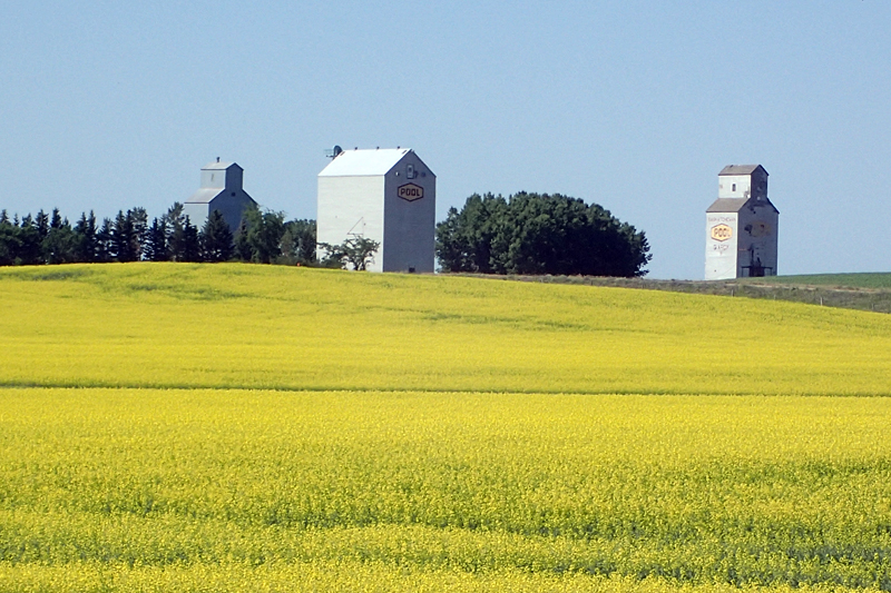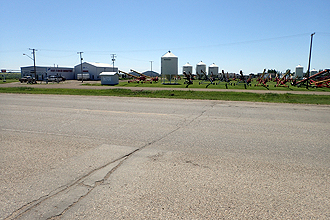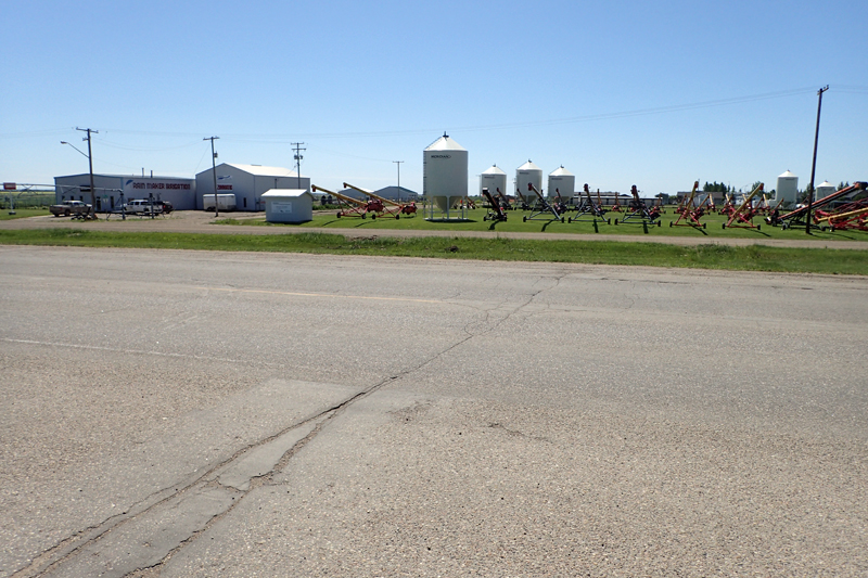 It was only a short run up to Highway 15 and then on to Outlook. The road was pleasant and we barely drew breath and we were there already. The prairie views had been wide, green, yellow and blue, interspersed by the large silver grain storage units. As we drew into Outlook the highway was lined with every shiny, brightly coloured, complex piece of farm machinery imaginable for sale. Your one-stop farming shop! Outlook is known as the Irrigation Centre.