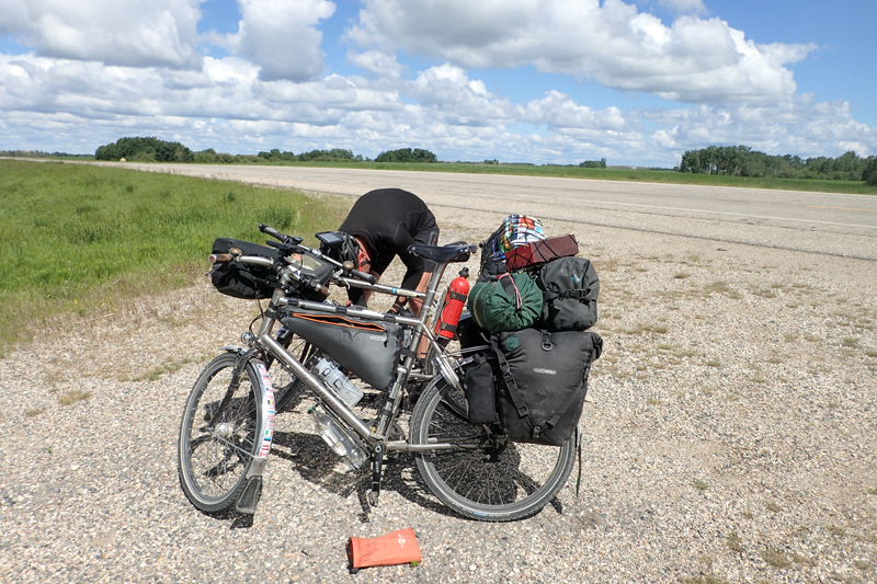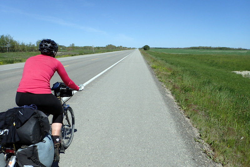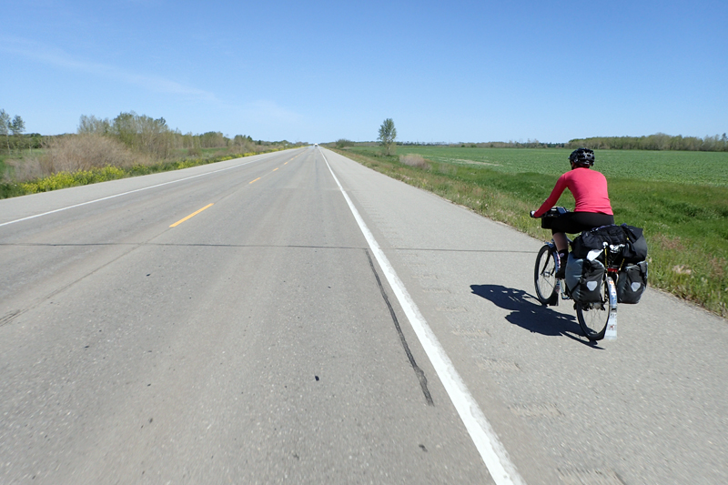 The sun is setting later than ever, it is still light at 10:00 pm. We woke to another good weather day, slight breeze of a headwind, nothing serious. We had a short day today, as we would over the next three days. Our plan is to ride as long as the wind remains favourable. We can't believe the conditions we rode in last week over those three days. We set off around 8:30 am after a slightly relaxed start. The Yellowhead Highway was good to us, not much traffic and mostly flat. We had a shoulder for most of the day, except one section where it disappeared to a gravel pit for no reason and came back 18 km later on. The road surfaces are quite inconsistent in Manitoba which is what everyone warns you about.