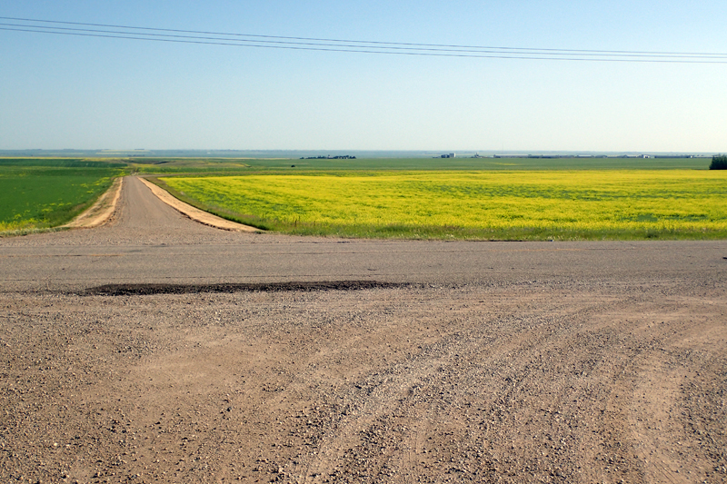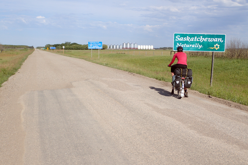 As expected, we had about about 10 km of gravel road from Binscarth, firstly on the 478 and then on the 22 once we had crossed into Sascatchewan. The 478 route was lovely, with a steep downhill and a little climb. The road was in quite a poor state but repaired with gravel and we had expected that. The scenery was very pretty. The main gravel stretch started from the Saskatchewan border and then once the 22 crossed another bigger road, it continued sealed and with a very good surface (and wide shoulder). The large potash mine might have had something to do with this. When mines arrive, roads improve.