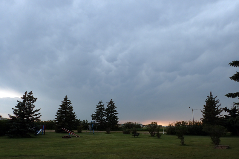 We had a very peaceful night in teeny Loreburn. The feared storm just landed a few drops and then moved on. The skies of Saskatchewan certainly live up to their vehicle registration plate logo "Land of the Living Skies".