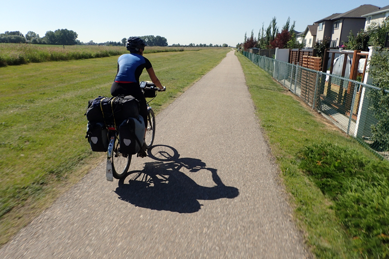 We decided to leave late this morning as we have some time up our sleeve prior to reaching Calgary and it would be a hot day. We had not even had to pitch the tent last night as Heather offered us the pullout couch! We ended up leaving at around 10:30 am. It was nice to have someone wave us off on our travels this morning!