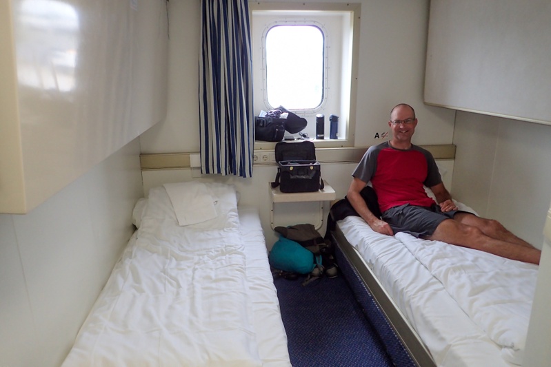 By riding all the way to North Shields we had scored a rest day, and checked out of the hotel at around 11:30 to mosey on down 600m to the ferry terminal. You could see the ferry from the hotel foyer! We had to wait in the terminal building as check-in only commenced at 12:30. As we walked out to take our bikes over to the check-in kiosk a DFDS attendant came over to us and said, "Check in commences at 12:30 so that is in ONE MINUTE". What a precise guy! He made it seem that if we did not check in at 12:30 excaclty we would be barred from boarding. Anyway, we went over and waited between two groups of very macho motorbike tourists (is there another kind?) and once we had passed the check-in gate we waited again to board with 6 other cycle tourists and had a chat. There was a couple from Belgium who had come over to tour some of Scotland for the wife's 60th birthday. She was a master organiser as the husband carried all their gear in a BOB trailer and she just had a tiny gear bag on her rear rack and very elegantly painted finger nails. She was fluent in English, while the husband who was not grimaced, every now and then until she explained he had fallen off his bike trying to negotiate a u-turn too quickly and broken a rib. "The doctor said there is nothing we can do, but he is a strong man!" she said gaily. She was very outgoing and asked us all about our trip. Later on she told us that they had not encountered any midges and after that I hated her. The other stand out was young Maya and her Mum. They were from Moray which we had passed en route to Aberdeen and were on their first cycle tour to visit family in Dresden, Germany. She was only young, about 9 or 10 years old but so enthusiastic and confident. A real pleasure to meet her and her Mum, we have no doubt that they will get to Dresden in fine style.