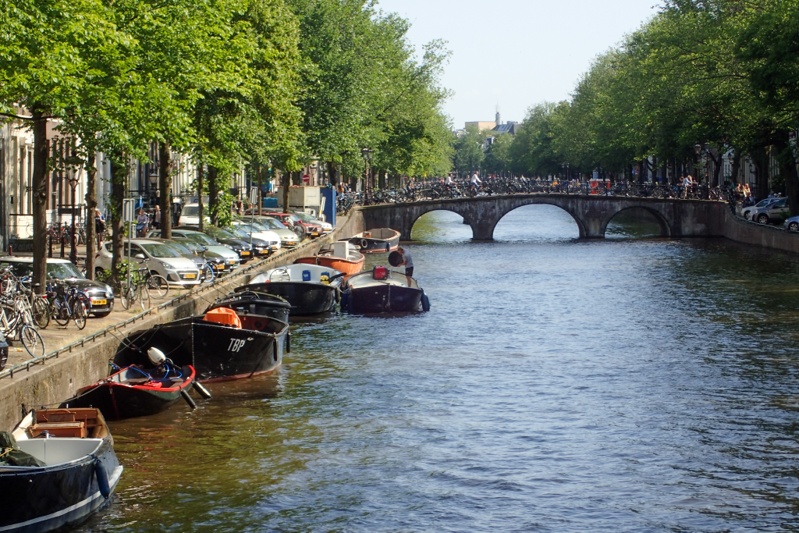 After we had secured our bikes on deck we headed to our cabin. The rest of the trip passed uneventfully. The crossing was very smooth and the cabin was very warm; it did not seem that the airflow was operational, but we relaxed and got some sleep. We enjoyed the buffet breakfast next morning and then the trip was over and we disembarked in cloudy Amsterdam! We soon found out that this was just a hangover from the previous day's 30 degree heat and within an hour or so it disappeared and we had blue sky. We set off on our 40km ride to our hotel. As always, arriving in the Netherlands on a bicycle is a "Ah ha" moment, as in "Ah, this is what life should be like all the time!". As a cyclist you have a completely seperate road network with its own traffic lights that change automatically or at the push of a button. Cars stop for you when exiting roundabouts, just because you are there. Everyone is on bikes, groups of school kids chatting and laughing as they go, businessmen in suits, Mums wiith a kid on the front and a kid on the back, even a man with his wife, kid and dog in the front of his bakfiets! We took a longer route than we needed to getting to our hotel as we wanted to see Zaanse Schans, which is an area of windmills along a canal. It's pretty touristy but quaint. We caught two small ferries en route to Westerpoort and arrived around 14:00 at our hotel. We would highly recommend Hotel2Stay. It is at Sloterdijk station so tram, bus and metro are right there, very convenient. The hotel is small studios and it was great to have a kitchenette with fridge and oven, etc.