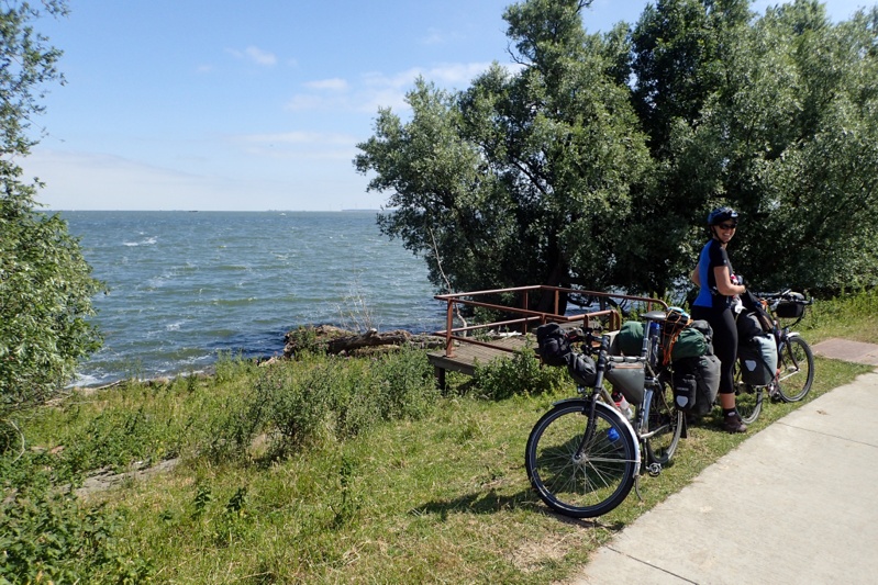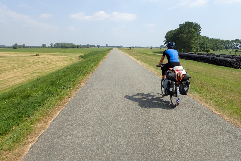 The diversity of the landscape in the Netherlands is always surprising as we experienced on a previous trip. When you think of the Netherlands you automatically think of a flat country with picturesque villages, but just today we cycled uphill, through beautiful forest glades and passed very sandy (high) areas. An example of this is Rosendael Woods, after Rosendael Castle where almost all the roads are car free and the place was full of road cyclists in little packs, obviously due to the little climbs that you get there. It was such an experience to ride there. After this we were back into rural Netherlands with farms and little canals. We stopped to buy a bottle of Coke, yes, our first of this tour! Must be hot! We drank it in a little park and watched the locals cycle past. After this we caught a little ferry across a river and then spent some time cycling along a dyke. We passed through various woodlands again on little dirt tracks. All the while there were elderly couples, families with small children and family groups with grown-up children, all out on their bikes just enjoying the day. We would often pass a couple who had stopped at a bench for a bite to eat, clearly out for the day on their bikes. We even passed an old man who had stopped and sat on a bench in the shade and fallen asleep. We love the atmosphere here when cyclists are the majority.