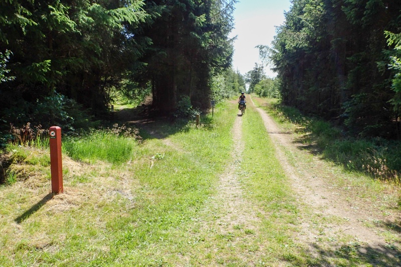 Our main stop was Jelling, UNESCO World Heritage Town due to the remains of Viking civilisation located there. It is a lovely spot, very low key, with a great info centre/museum. It is a cool place to visit. The weather today was quite humid and clammy and thunderstorms threatened this afternoon. The terrain is getting a little hillier now, which is a good thing as the legs need to get back into that! We are camped in the middle of an old pine forest which was very peaceful. We filled up with water at nearby river.