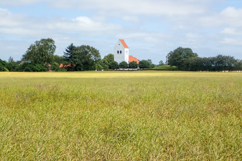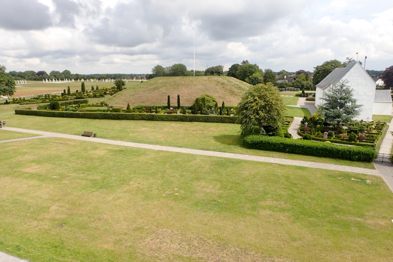 The weather forecast promised sunshine all day today, but it only appeared in the afternoon. The day was grey and quite cool. Our washing did not dry overnight so I loaded my cycle outfit onto the back of my bike. Mike wore his as damp clothes don't bother him and he reckons that they can dry on the body! We rode/pushed our bikes up the little walking track we had ridden down last night and hit the road. Another beautiful route today. We cannot recommend the H??rvejen enough and it is popular with cycle tourists too. We entered Viborg on a rail trail and then continued along the lake edge. It is a big town, we did not go into it. We stopped to buy bread rolls for a morning snack and ate them at the little bench and table set out at the village entrance. The next stop on our route was Fyrkat, which was an ancient Viking fort. From here we passed through some forest and in and out of villages. Jutland (this rural part of Denmark we are cycling through) is very beautiful and peaceful and has a lovely feel to it.