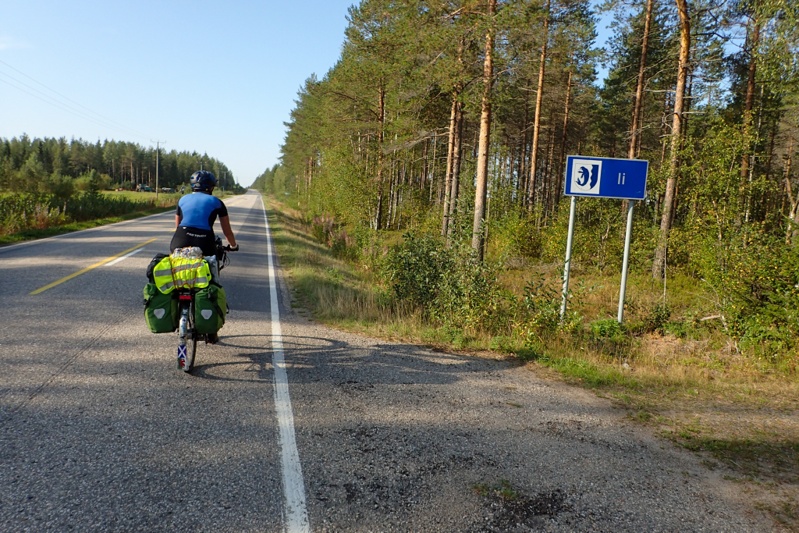We had a steep climb out of the laavu area on the river and then another climb up to the supermarket on the main road! Wow, we were quite puffed when we arrived! One way to wake up. We did the shopping for the day and set off. The road was quite hilly, lots of ups and downs and we turned off it onto the road to Ranua after 10km or so. It was a good road but with not much happening. We are no longer in Lapland so farming is more and more noticeable, but there is still a lot of forest and open countryside. We also saw a few reindeers, making their usual nuisance on the road and refusing to get off when trucks and cars bear down on them. We both felt a bit "under the weather today" and for some reason it felt like a bit of an effort. It could be that now that we have reached our "goal" at Karesuando and have had the hotel stay in Rovaniemi, it feels like we haven't much to look forward to? We have experienced this before. We are both feeling annoyed about the bugs as an added problem that just does not go away! Hopefully as we move south they will. The trip still has a way to go though, over 2 weeks of cycling left. We are currently in a line to the top of the Gulf of Bothnia and will go to the coast in a few days, so that will be some variety!